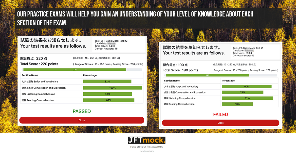 ජපානයේ එදිනෙදා ජීවිතයට අවශ්‍ය මූලික ජපන් භාෂා ප්‍රවීණතාවය මැන බැලීම සඳහා JFT විභාගය සැලසුම් කර ඇති අතර එය රටවල් 12 ක පිළිගැනීමට ලක්ව ඇත. ජපානයේ අවස්ථාවන් සොයන ඕනෑම අයෙකුට තම රටේ සිටම මෙයට සූදානම් වීමට JFTmock මග පෙන්වයි.
